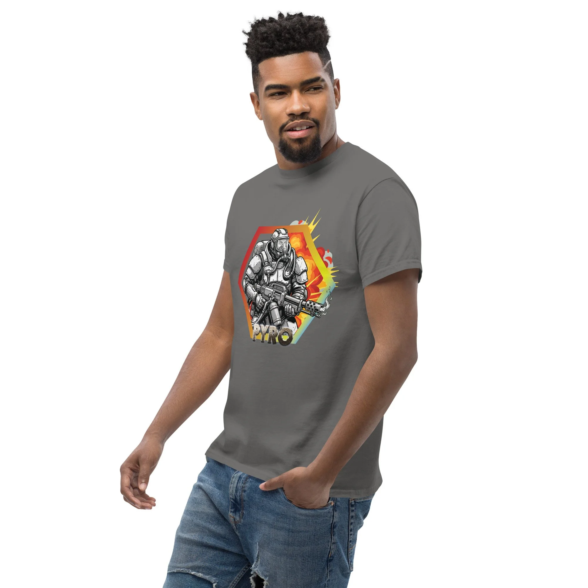 The Pyro Class Tee represents chaos, pressure, and total area control. This is the role built for players who don’t just engage the enemy, they force them out, break their positioning, and turn safe ground into a problem.